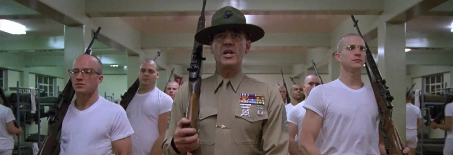 En 1967, durante la guerra de Vietnam, un grupo de nuevos reclutas llega a Parris Island para instrucción básica de combate. Después de ser rapados, asisten con el Sargento de Artillería Hartman, que emplea tácticas draconianas para convertir a los jóvenes conscriptos de la Infantería de Marina en soldados endurecidos y preparados para el combate. Pero sus duros métodos hacen que no todos los jóvenes puedan soportarlo. En especial Patoso, quien se ha ganado el apodo por sus torpezas, que hacen que paguen todos cada vez que hace algo mal. Lo que hará que el resto del pelotón le odie. Película antibelicista de Stanley Kubrick, que ya había hecho 'Senderos de gloria'. 'La chaqueta metálica' es una de las películas sobre guerra más queridas de todos los tiempos.