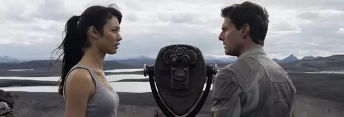 Nos gusta la ciencia ficción, y de vez en cuando veo películas de este genero, pero en realidad veo de todo y la ciencia ficción me gusta mucho. Ya nos tocaba y era una película que le teníamos ganas y en principio os digo, que me ha gustado bastante, aunque también esperaba un poco más, se me ha quedado un poco corta y no me refiero a la duración de la película. Hasta ya pasada 1 hora de película no se anima un poco, la película parece que no quiere arrancar, está como en un punto muerto y hasta pasada la hora no se ve movimiento. A nivel visual es buena, los escenarios y exteriores digitalizados están muy bien, muy bien ambientada y lo que si que es uno de los puntos fuertes es su Banda sonora que creo que es excelente, muy buena música la que ambienta todo el filme. Después de la destrucción de la luna, la tierra se vio metida en un estado de caos, terremotos, tsunamis y demás desastres acabaron con la tierra tal como era. Tenemos como principal protagonista a Tom Cruise que es Jack Harper o el técnico 479, que es su número de identificación; junto a el tenemos a Vika que es su oficial de comunicación, en la historia también tenemos a Sagy que es la jefa del equipo, su oficial superior, y mira por donde en un momento de la historia aparece Julia que es Olga Kurylenko y que cumple muy bien con su personaje. Tom Cruise ya sabemos que lo que hace lo hace bien, no es ningún principiante y cualquier personaje que hace lo hace suyo y lo hace muy bien. Me ha gustado ver a Morgan Freeman, que la verdad que no sabía que salía en la película; lo digo porque normalmente no suelo leer la sinopsis ni se que actores salen, me gusta saber lo mínimo sobre las películas, aunque a veces eso es imposible. El detalle de Jack Harper luchando contra el mismo es muy original y curioso; y ya cuando se anima la historia se complica bastante, el espectador tiene que estar atento, te puedes perder fácilmente. Los humanos ganaron la guerra, pero la tierra quedo totalmente destruida, y por ahí están "los skabengers", "Carroñeros" como los llaman. A Jack Harper le quedan pocos días para acabar el servicio, pero tiene que salir a localizar y reparar 2 drones y claro, la cosa se va a complicar un poco. En su parte final hay un poco de lio, pero se va llevando. Te he contado en pequeñas dosis parte de la historia, pero hay mucho más, así que si te gusta la ciencia ficción y quieres ver a un Tom Cruise futurista con pinta de motorista esta es tu peli, aunque yo esperaba algo mas, se le podría haber sacado mas a la historia.